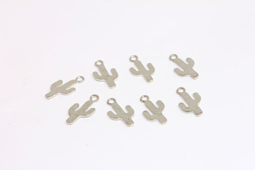 9x16mm Rhodium Plated Cactus Charm, Hammered Cactus Beads, Desert Plant Necklace,ROSE214-2