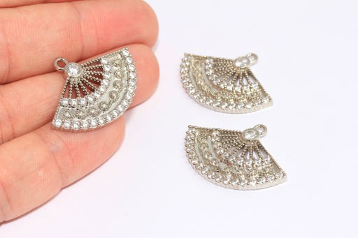 20x32mm Rhodium Plated CZ Sector Charms, Micro Pave White Stone Color Fan Pendant, ROSE247-1