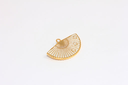 17,5x32mm 24k Shiny Gold Sector Charms, Pearl Enamel Color Fan Pendant, ROSE247-2