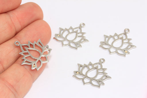 21x24mm Rhodium Plated Lotus Charms, Flower of Life Pendant, Lotus Connector Beads, XP348