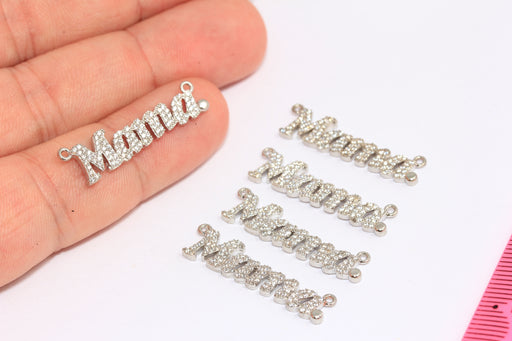 5x28mm Rhodium Plated CZ Mama Charm, Micro Pave Mom Charms, XP377