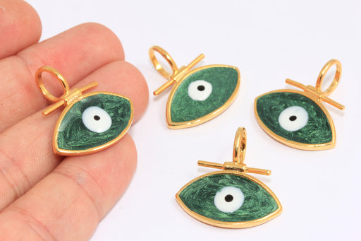 27x28mm 24k Shiny Gold Evil Eye Medallion, Green Enamel Evil Eye Charms, XP352