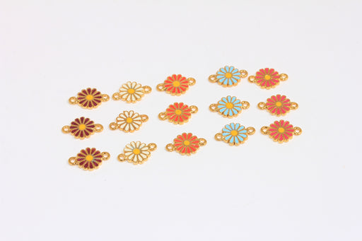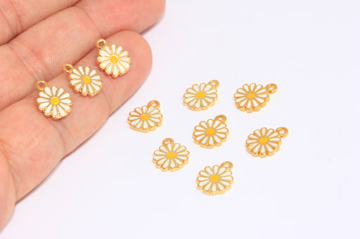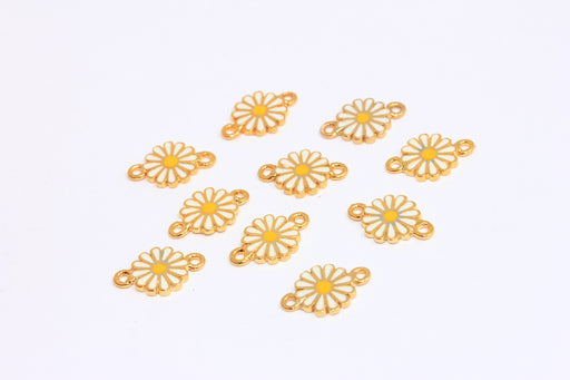 9,5mm 24k Shiny Gold Daisy Charm, Enamel Flower Connector Beads, XP