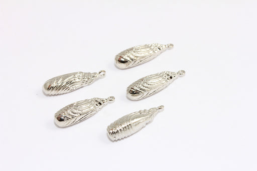 7x25mm Rhodium Plated Sea Shell Charm, Drop Seashell Beads, Sea Animals, XP218