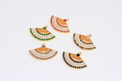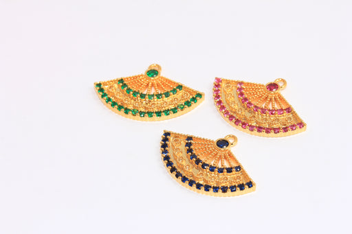 17,5x32mm 24k Shiny Gold CZ Sector Charm, Micro Pave Optional Stone Color Fan Pendant, XP