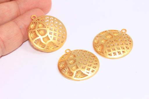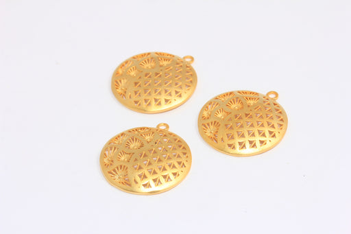26mm 24k Matt Gold Flower of Life Charm, Yoga Necklace Pendant, Flower Of Life Medallion, BRT144