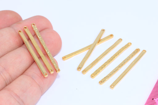 2,4x37mm 24k Shiny Gold Hammered Bar, Two Hole Bar, Long Bar Necklace, Connector Bar, BRT141