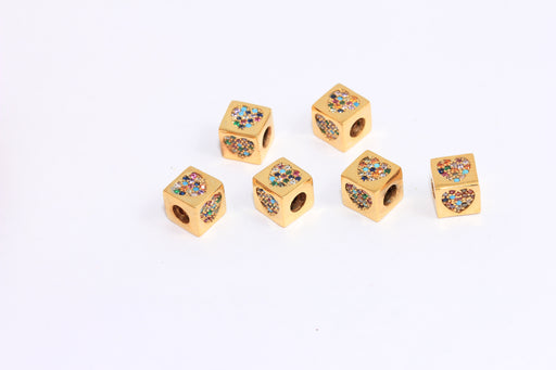 8x8mm Raw Brass Heart Beads, Mixed Stone Heart Charm, Cube Micro Pave Heart Beads, BRT282
