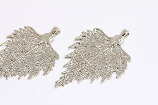 37x55mm Rhodium Plated Leaf Charms, Filigree Leaf Pendant, CR167