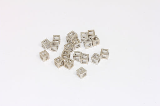 5mm Rhodium Plated Cube Charms, Open Cube Charms, 3D Cube Beads, CR190
