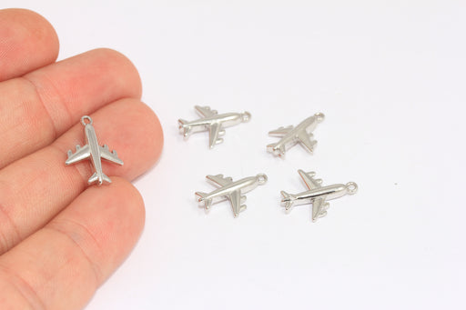 13x15mm Rhodium Plated Plane Pendant, Airplane Charms, Airplane Pendant, CR216