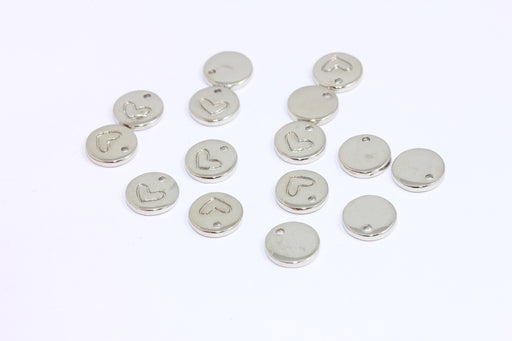 10mm Rhodium Plated Heart Charms, Heart Coin Beads, Mini Heart Charms, BXB437-4