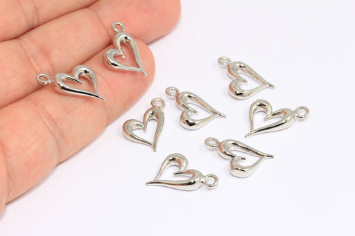 12mm Rhodium Plated Heart Charms, Outline Heart Shaped Pendant, BXB437-5