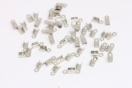 Rhodium Plated Cord Crimp, Fold Over Cord End Tips, Inner Size 3mm, CR147