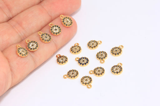 7x10mm 24k Shiny Gold Evil Eye, Black Stone Micro Pave Evil Eye Drop Evil Eye, XP245