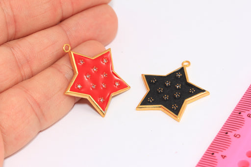 27x29mm 24k Shiny Gold CZ Star Pendant, Enamel Star Charms, XP39