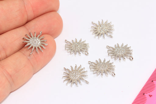 14,5mm Rhodium Plated Sun Charms, Micro Pave Sun Connector Beads, XP375