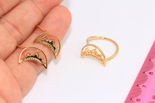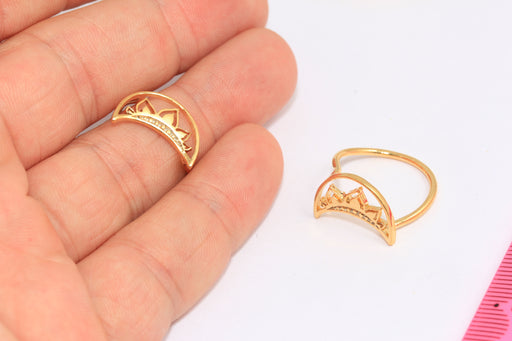 18mm 24k Shiny Gold Moon Ring, Crescent Moon Ring, Crown Ring, Queen Rings, XP261