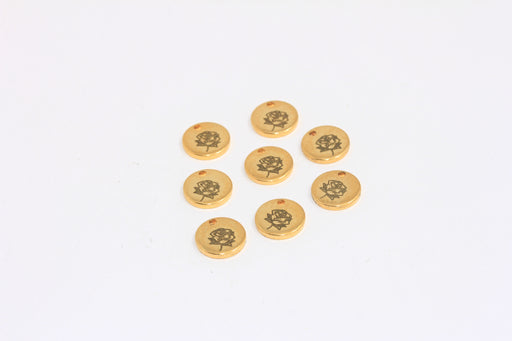 10mm Raw Brass Flower Beads, Disc Charms, Engraved Flower Bracelet Beads, BXB141-5