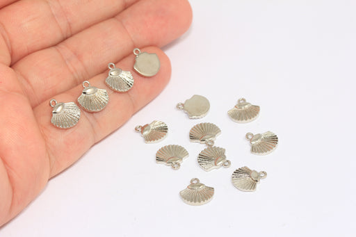 10mm Rhodium Plated Sea Shell Charm, Seashell Beads, Sea Animals, BXB8-1A