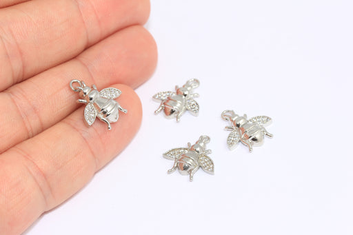 14mm Rhodium Plated CZ Bee Charm, Micro Pave Bee Pendant, AG22