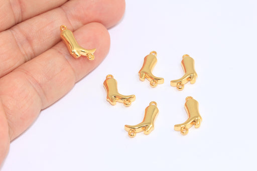 4x14mm 24k Shiny Gold Cowboy Boot Charms, Western Cowboy Connector Beads, CR89-2