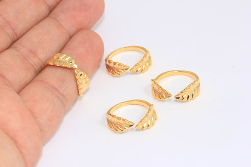 16mm 24k Shiny Gold Flower Rings, Gold Plated Leaf Ring, Open Laurel Ring, CR206