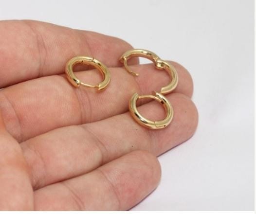17mm 24k Shiny Gold Leverback Earrings, Plain, Small MLS322