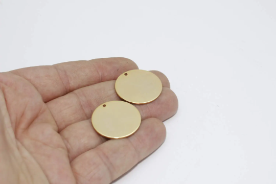 25mm 24k Shiny Gold Round Charms, Round Disc, Brass BRT686