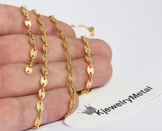 4,5x6mm 24k Shiny Gold Oval Bar Chain, Choker Bar Chain, CHK458