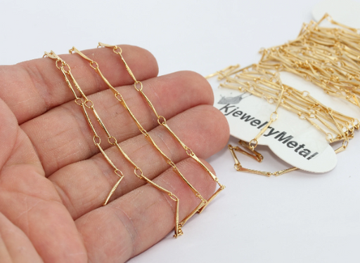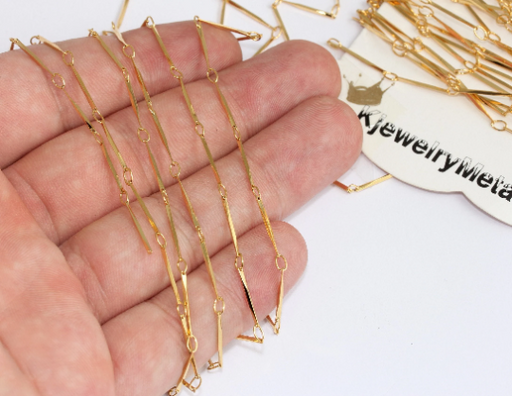 2,2mm 24k Shiny Gold Bar Chain, Soldered Chain, Bar chain BXB219