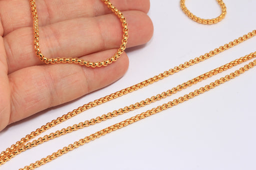 2,5mm 24k Shiny Gold Box Chain, Soldered Box Rolo Chains, BXB393