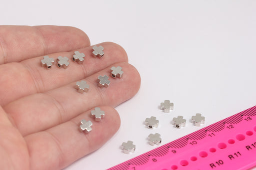 2,3x6mm Rhodium Plated Plus, Plus Shape Beads, Silver Plus Beads, Plus Charms, Bracelet Connector, Dainty Charms, MTE1354-2
