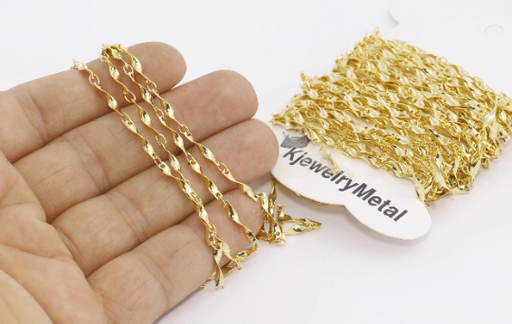 2,3mm 24k Shiny Gold Helix Chain, Soldered Chain, Bulk Chains, BXB103