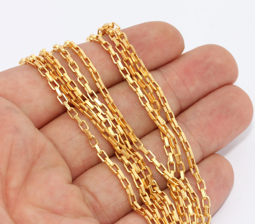 2,2x5,2mm 24k Shiny Gold Link Chain, Gold Bar Chain, BXB353