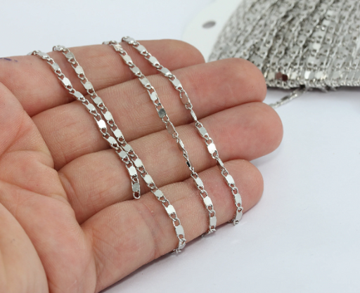 2,4mm Rhodium Plated Curb Chain, Silver Bar Chain, Silver BXB231