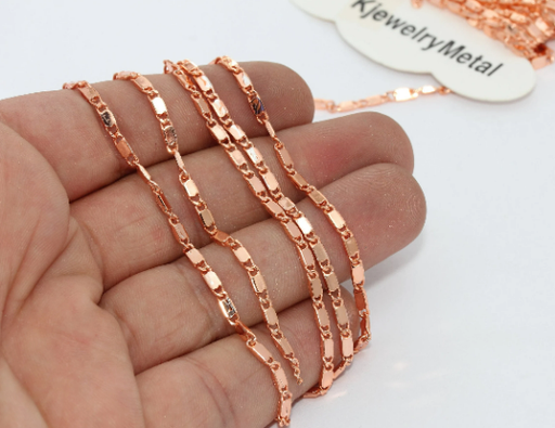 2,4mm Rose Gold Curb Chain, Rose Gold Bar Chain, Gold BXB197