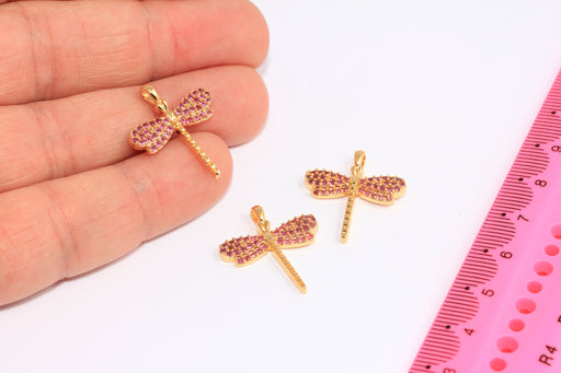 20mm 24k Shiny Gold Dragonfly Charms, Micro Pave Dragonfly, CHK347-3
