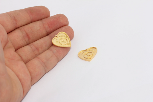 20mm 24k Matt Gold Heart Charms, Love Necklace, Heart MTE753