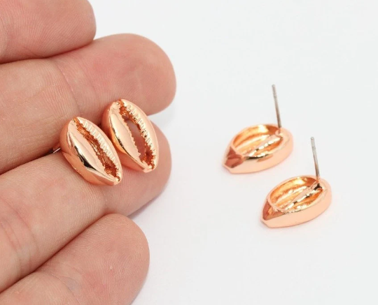 10x15mm Rose Gold Cowrie Earrings, Cowrie Charms,Rose MTE1095