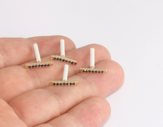 15mm 24k Shiny Gold Bar Studs, Micro Pave Earrings, , XP215