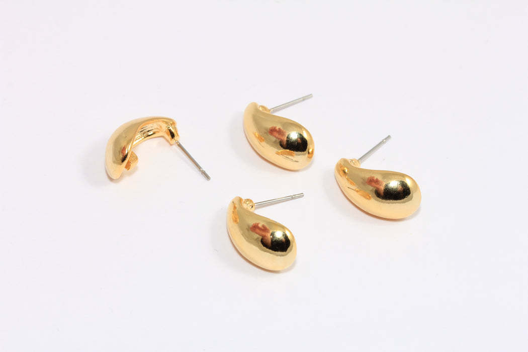 24k Shiny Gold Drop Earrings, Teardrop Stud Earrings, Puffed Drop Earrings, HRN63-1