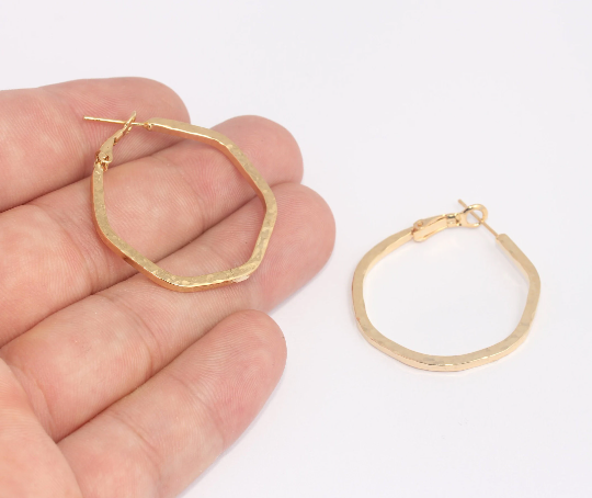 35mm 24k Shiny Gold Plated Hoop Earrings, Twisted Earrings CHK684-1