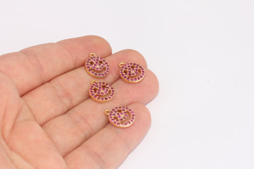 24k Shiny Gold Plated Smile ,12x14 Smile Charms,Cz, Smile Face FRB62