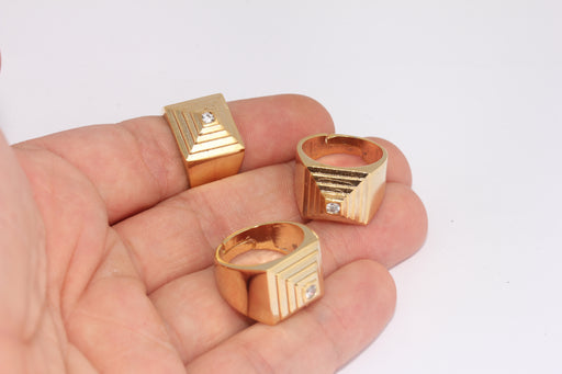 17-18mm 24k Shiny Gold Cube Rings, Micro Pave Cube Rings, FRB55