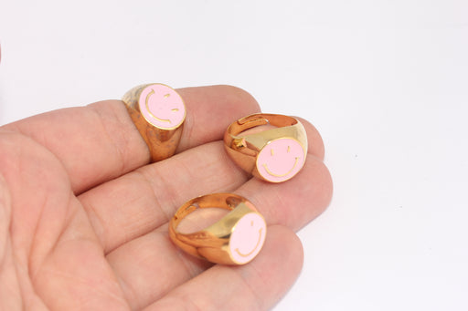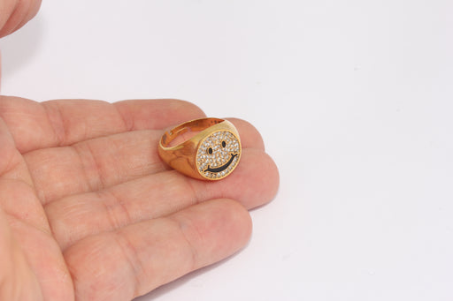 17-18mm 24k Shiny Gold Smiley Rings, Adjustable, Gold FRB17