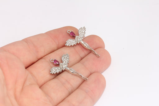 23x32mm Rhodium Plated CZ Angel Pendant Charms , Pave Angel , Pave Wings , FRB79
