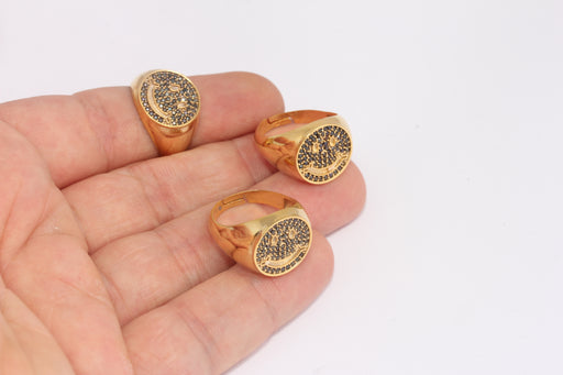 17-18mm 24k Shiny Gold Rings, CZ Black Stone Micro Pave FRB83
