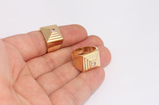 17-18mm 24k Shiny Gold Cube Rings, Pink Stone Rings,Gold FRB59