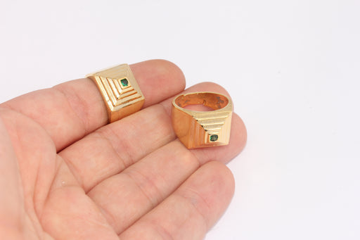 17-18mm 24k Shiny Gold Cube Rings, Green Stone Rings, FRB65